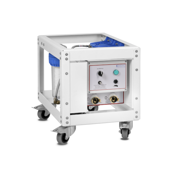 This equipment is used to filter contaminated water. The system can be attached to a personal shower or to a material decontamination lock. The water inlet of this equipment must be connected to the outlet of the shower tray or material lock.
